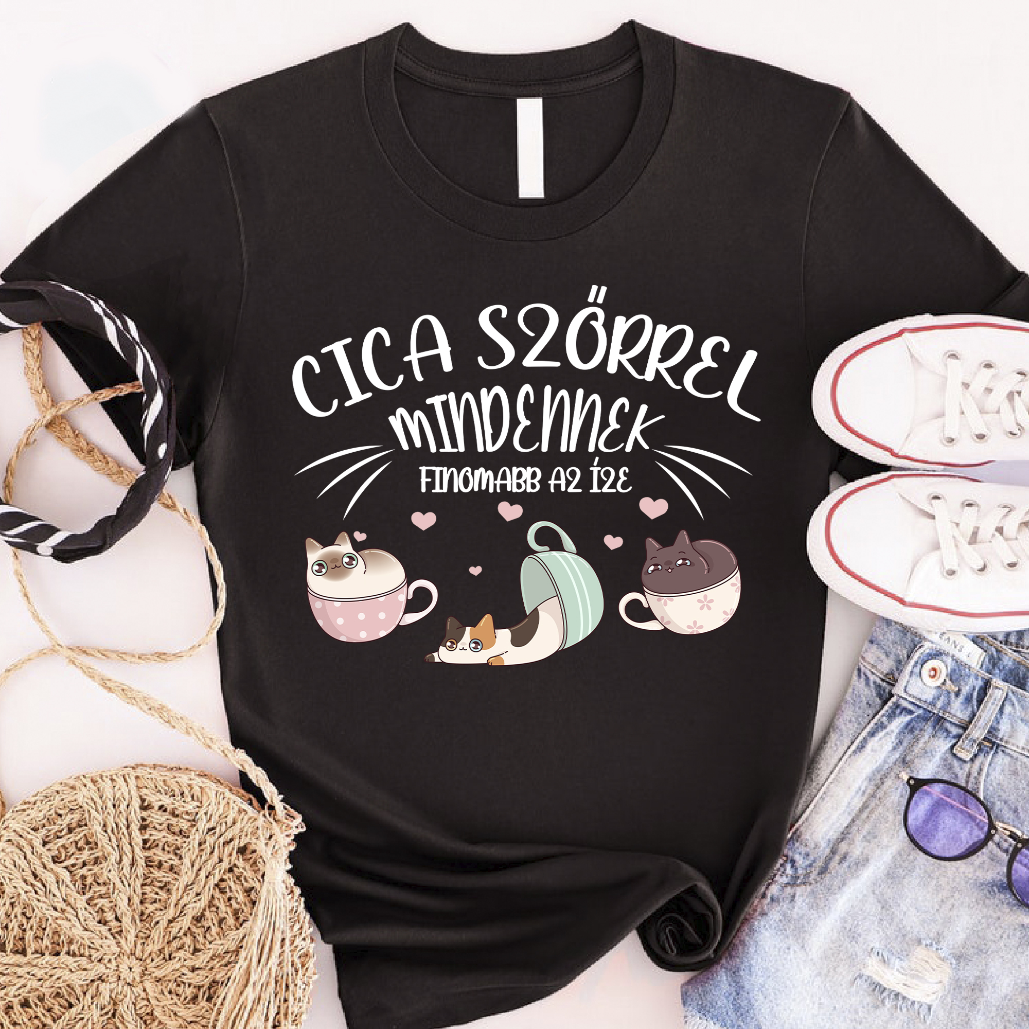 Cica szőrrel mindennek finomabb az íze póló