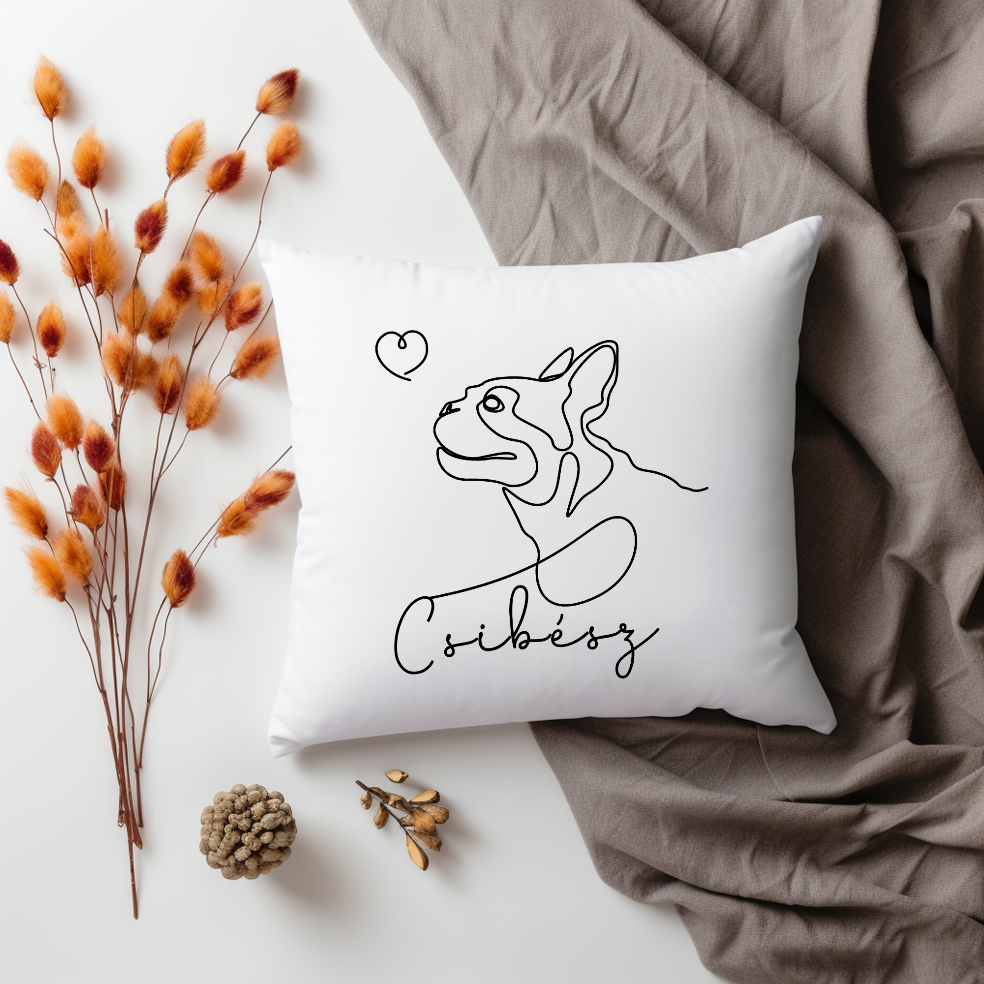Lineart stílusú francia bulldogos párna névvel