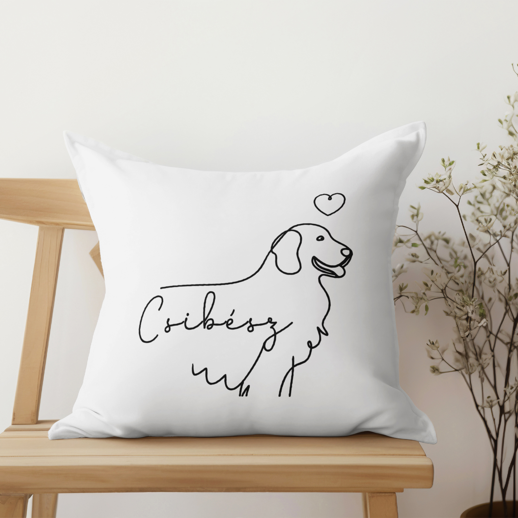 Lineart stílusú golden retrieveres párna névvel