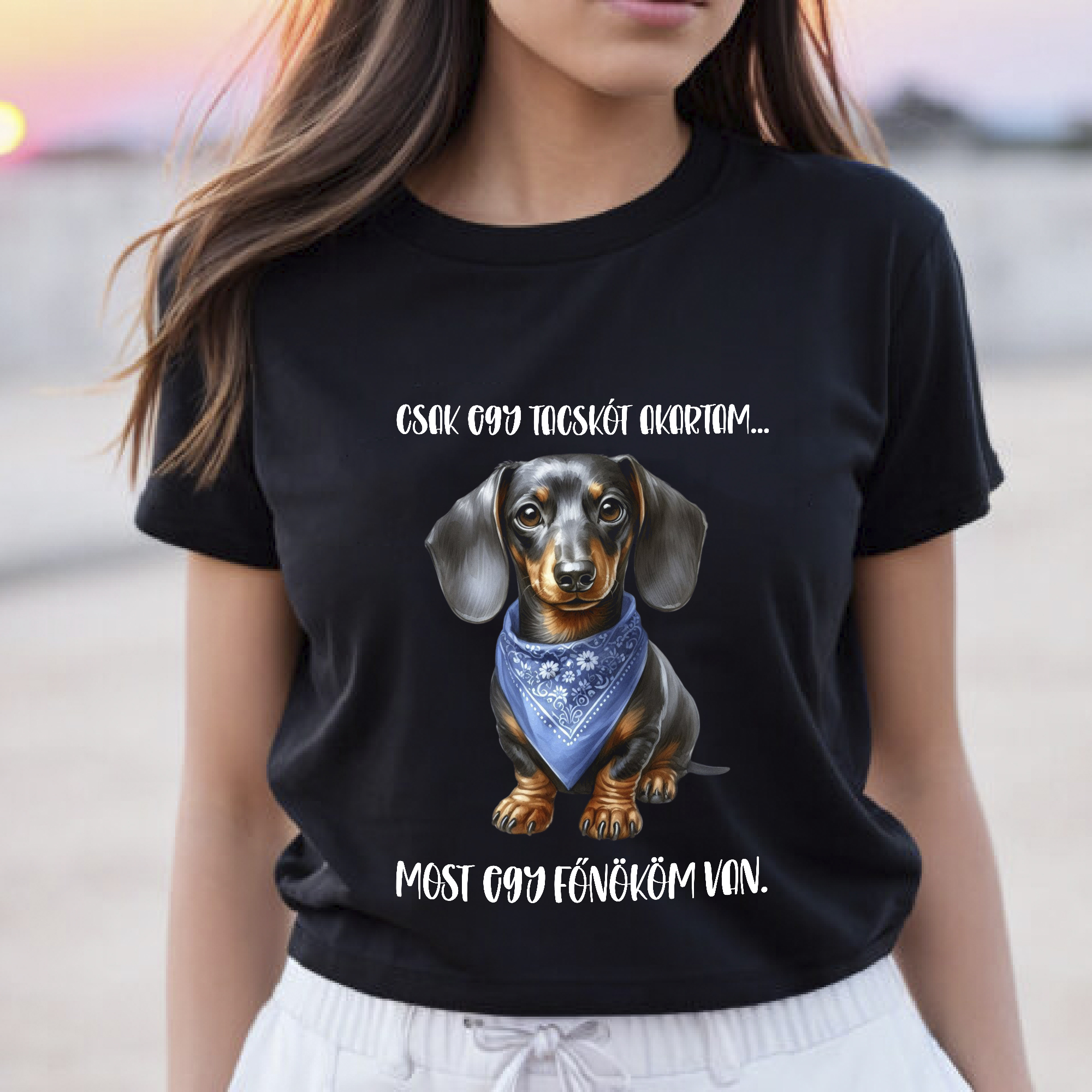 Most egy főnököm van kék kendős tacskós póló
