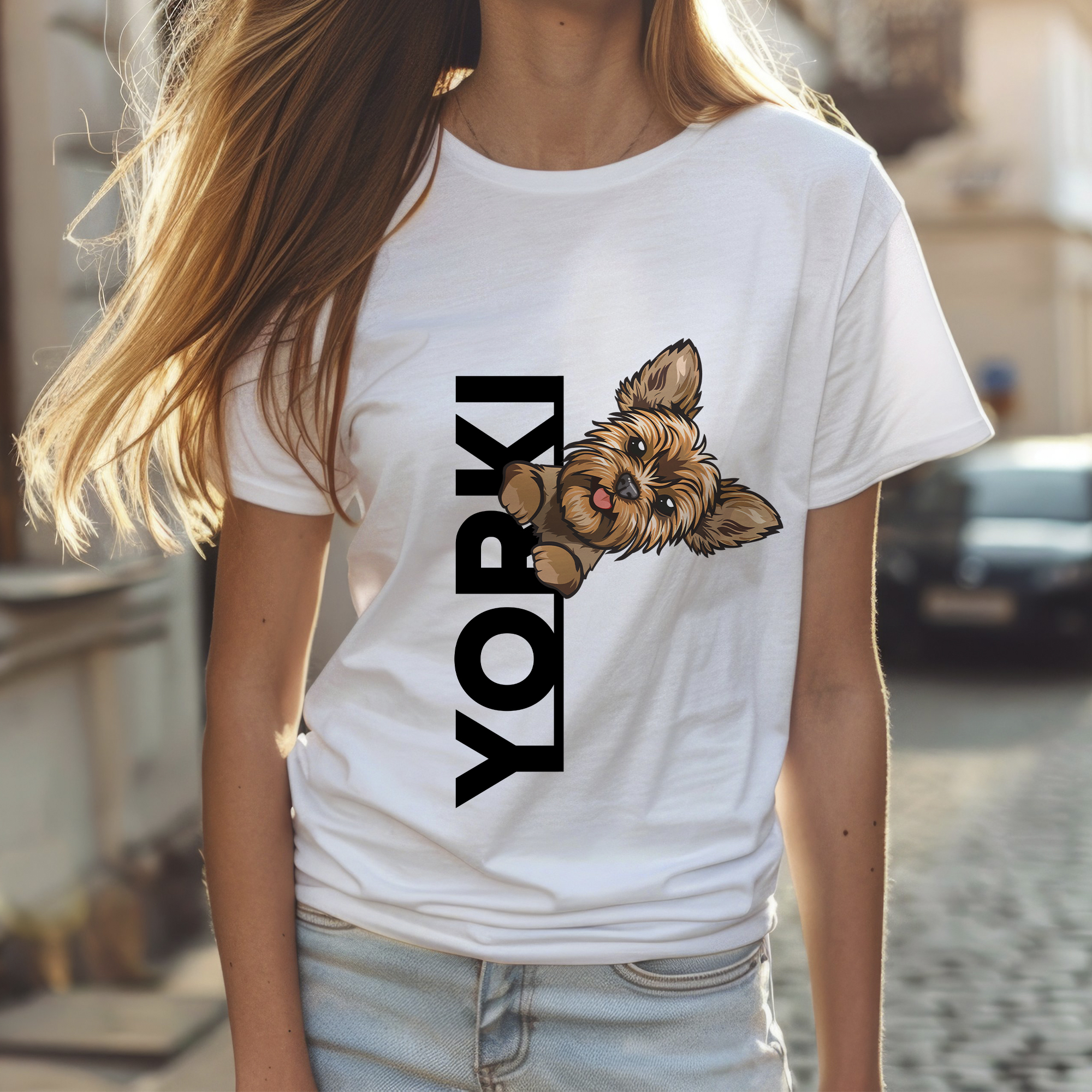 Yorki feliratos póló, cuki yorkival